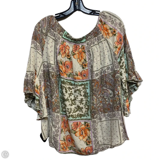 Top Short Sleeve By Cato In Cream & Orange, Size: L