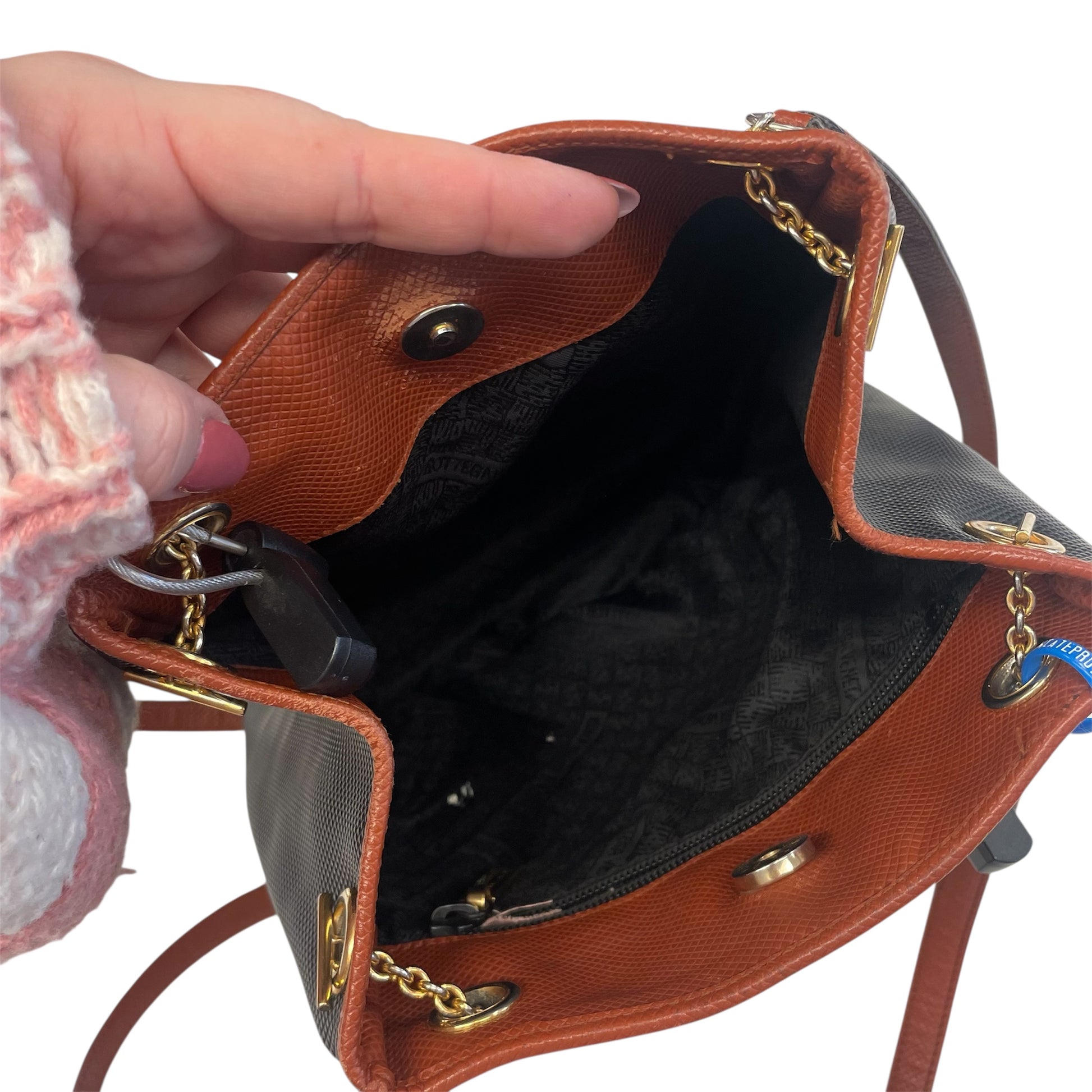 Handbag Luxury Designer By Bottega Veneta In Black & Brown, Size:Small