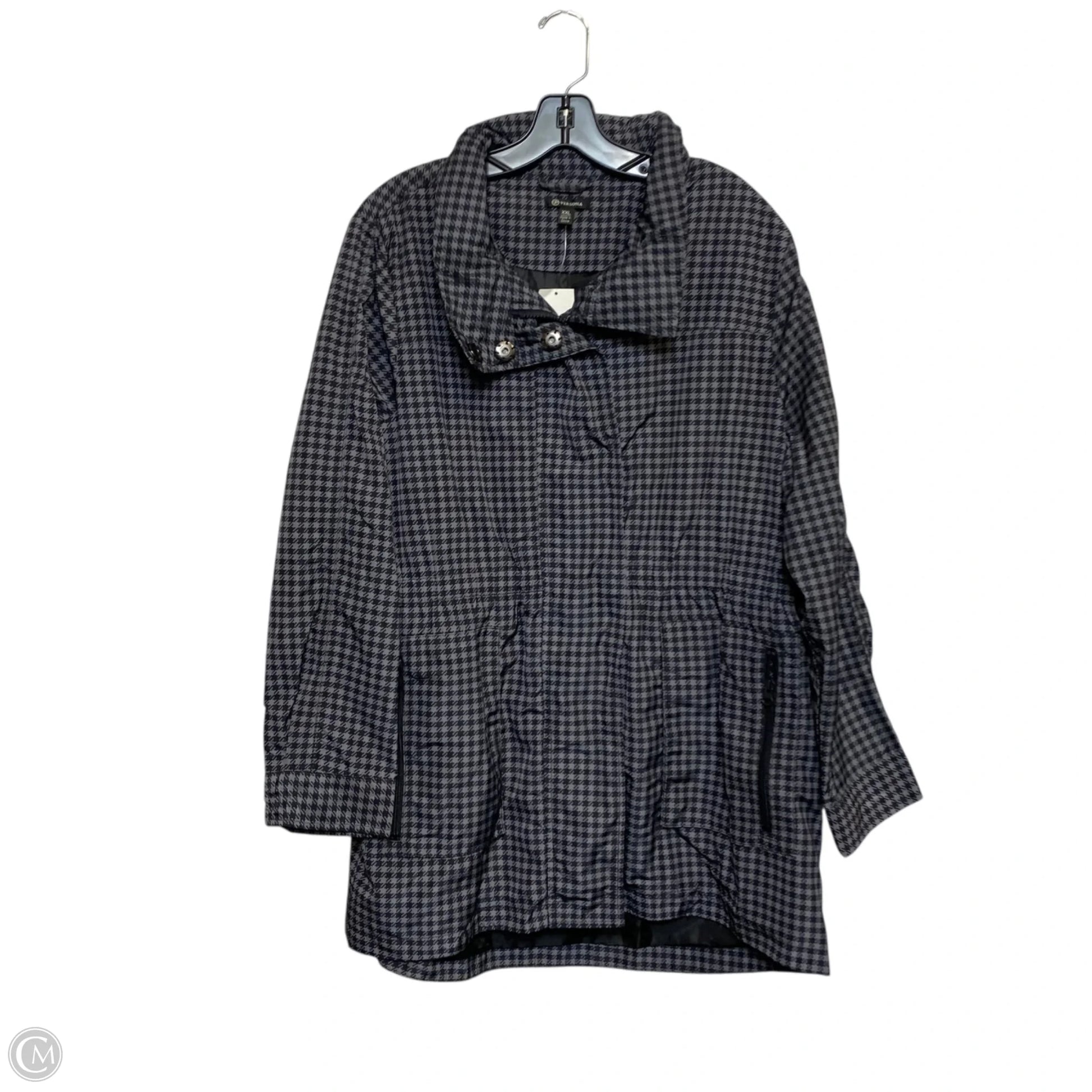 Jacket Windbreaker By Versona In Black & Grey, Size: Xxl