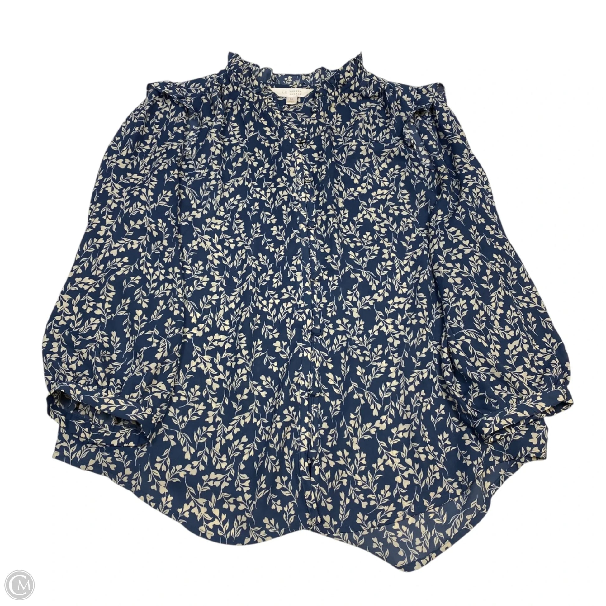 Top Long Sleeve By Lc Lauren Conrad In Blue & White, Size: M