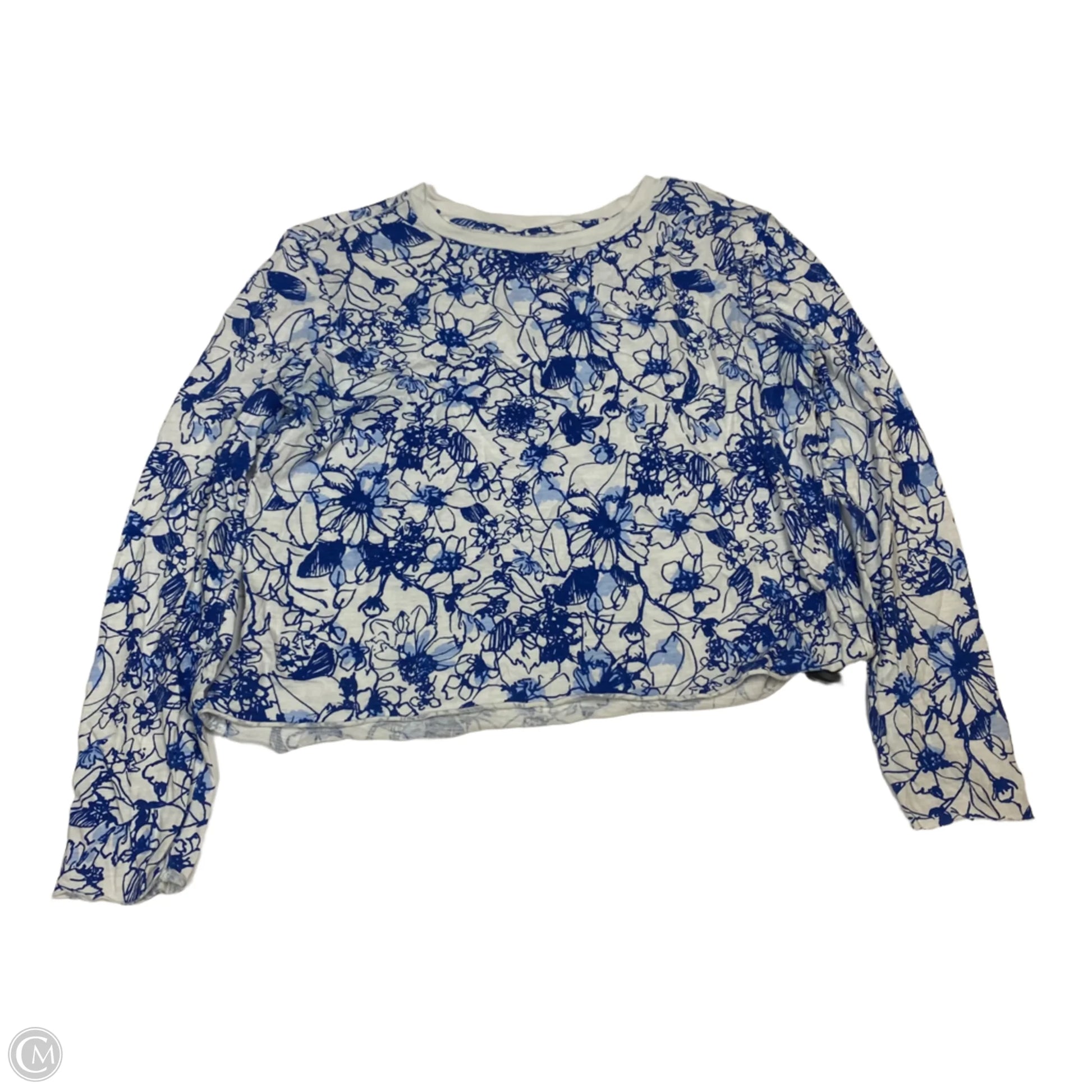 Top Long Sleeve By Maeve In Blue & White, Size: M