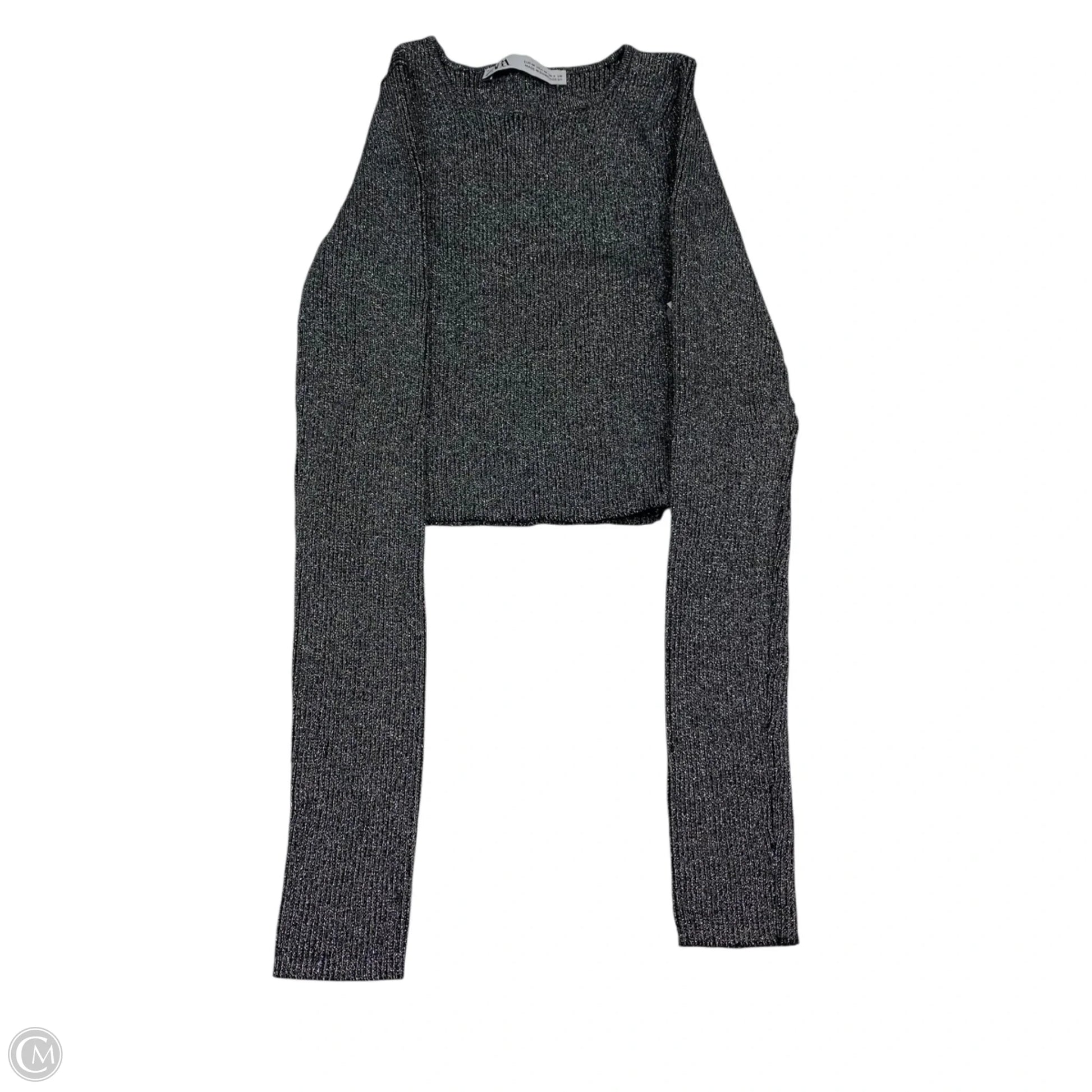 Top Long Sleeve By Zara In Black & Silver, Size: M