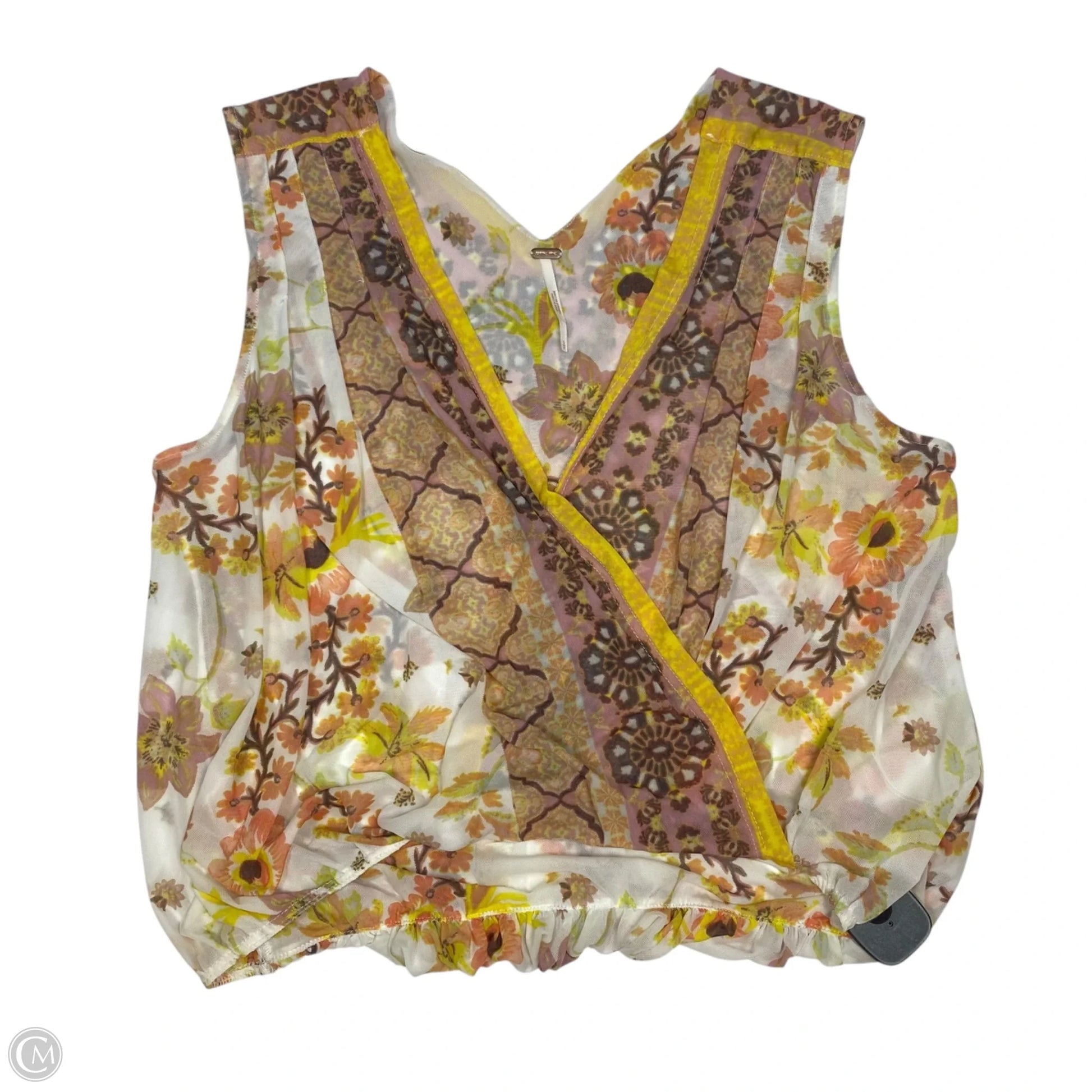Top Sleeveless By Free People In Pink & Yellow, Size: S