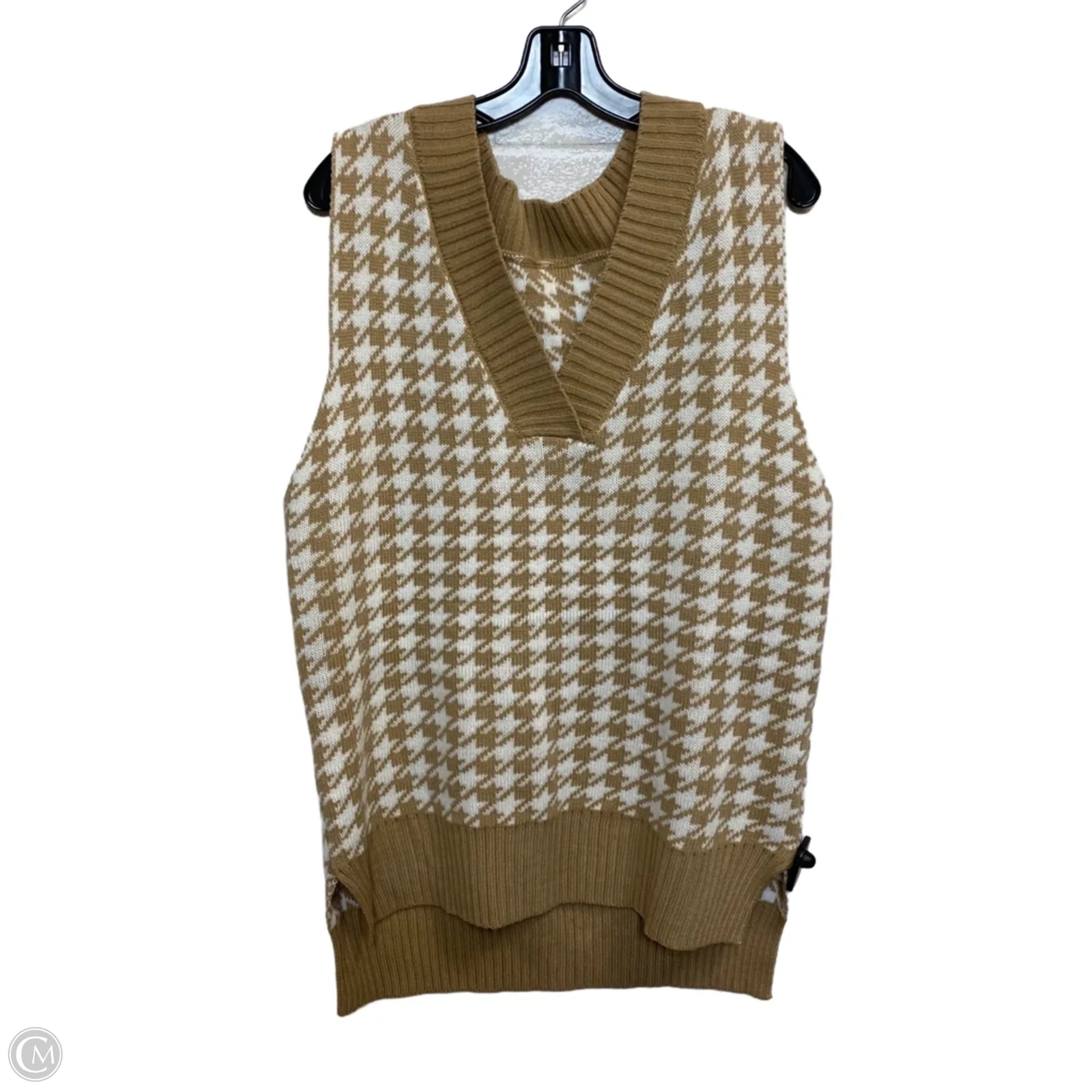 Vest Sweater By Clothes Mentor In Tan & White, Size: S